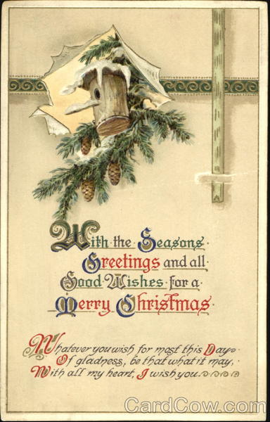 Front: With the Seasons Greetings and all Good Wishes for a Merry Christmas NY hatever you wish for most this Day Of gladness, be that what it may, With all my heart, I wish you Back: PDP ON THIS SIDE. PRINTED IN GERMANY