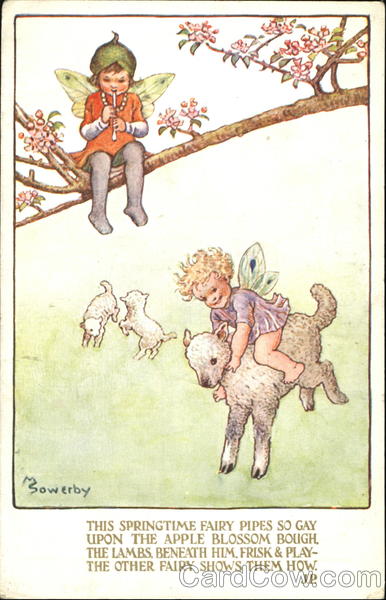 This springtime fairy pipes so gay upon the apple blossom bough. The lambs beneath him frisk & play the other fairy shows them how