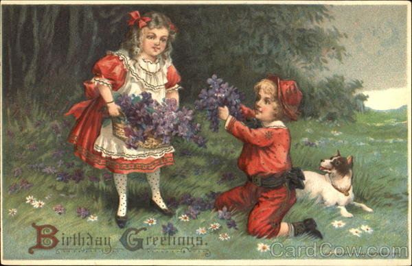 Front: irthday Greetings. COPYRIGHT BY MAX FEINBERG 1911 Back: 150 No. 18226 Chromo emb. No. 18227. gel. Dessin 3. This side for the Address only.