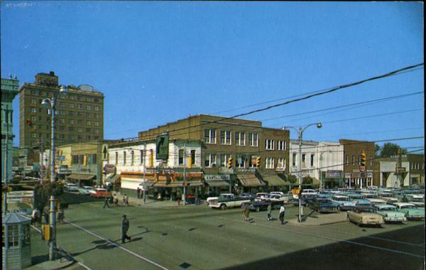 View of Goldsboro's main intersection, with the Wachovia Bank Building, the city's tallest, looming in the background.