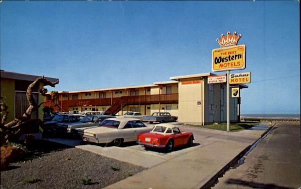 Facing Ocean at First Avenue in downtown Seaside, Oregon. 60 North prom Open all year Partial view of Motel parking area heated indoor pool and Sauna bath. Free coffee TV - Room phones - Daily maid service - no Kitchens - No Pets please.