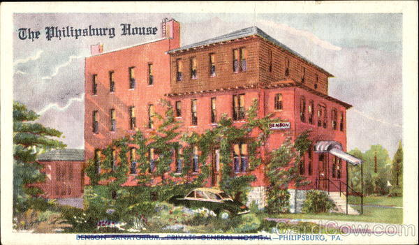 Front: The Philipsburg House SENBON BENGON JANATO HESPITAL-PHILIPSBURG, PA. Back: The Philipsburg House BENSON SANATORIEM A PRE I BENTON - Đ. Opercond Chief Surgeon 114 South Front Street Philipsburg, Pa.