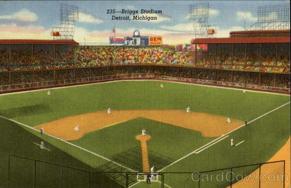 Front: 235-Briggs Stadium Detroit, Michigan GEN Back: BRIGG'S STADIUM At Michigan and Trumbull Avenues, within a mile of downtown, is the home of the Detroit "Tigers." OC-H983 UNITED NEWS CO., 24 WEST JEFFERSON AVENUE, DETROIT, MICH.