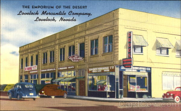 | Lovelock Mercantile Company, The Largest Department Store in the State of Nevada, consisting of Groceries, Meats, Hardware and Furniture, Dry-Goods, Drug Dept. and Fountain. Best Lunches Served. Stop in for Lunch and Visit our Entire Store. |