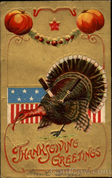 Front: THANKSGIVING GREETINGS Back: THIS SPACE MAY NOV 21 FOR COMMUNICAT 6-30P 19 09 N.J. RD DRESS ONLY TO BE U.S.POTAGE Mr Nilson - Huff With Love & all good wisher Aunt Lizzie New Brunswick New Jersey Bot 42 R.F.D x 5