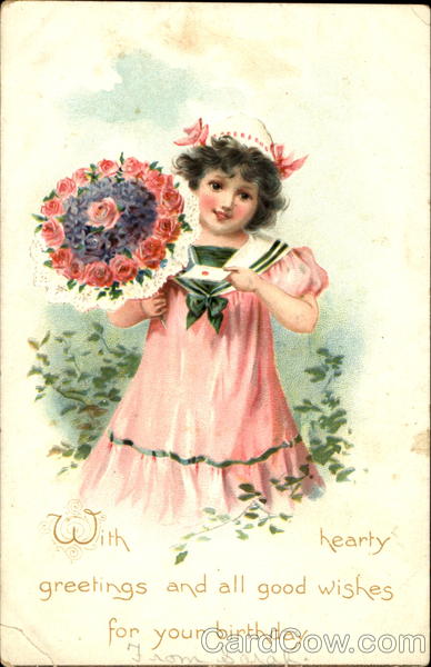 Front: With hearty greetings and all good wishes for your birthday. 7 Back: Raphael Tuck & Sons' "Birthday Post Cards ART PUBLISHERS TO THEIR MAJESTIES THE KING & QUEEN (FOR CORRESPONDENCE.) TRADE MARK