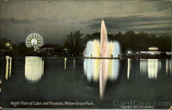 Night View of Lake and Fountain, Willow Grove Park.