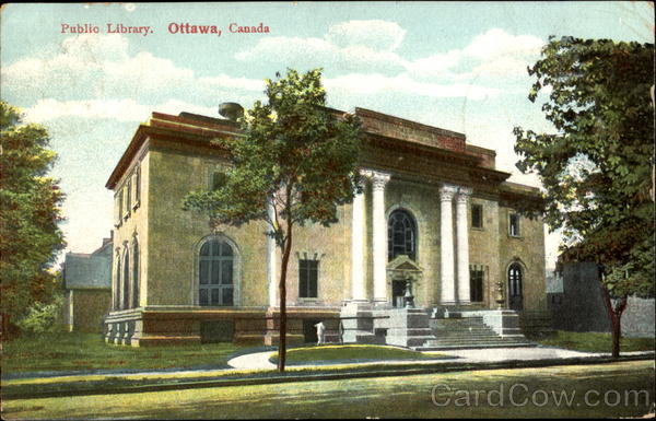 Front: Public Library. Ottawa, Canada Back: ZOGI WAS jare my the spend- Fourth o own E-7. Paul. A. 780. 256. July 41907. Mas Abbie L. Peck Newtown Connecticut Bux. 454 w.ra. POSTA