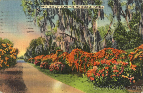 D 40:-A HEDGE OF FLAME VINE AND HIBISCUS, FLORIDA.