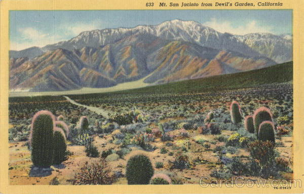 Front: 633 Mt. San Jacinto from Devil's Garden, California 7A-H3625 Back: WESTERN PUBLISHING & NOVELTY CO., LOS ANGELES, CALIF. "C.T.ART-COLORTONE REG.U.S. PAT. OFF.