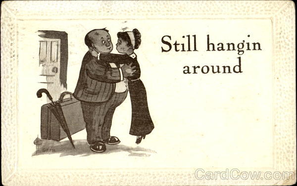 Front: OF H Still hangin around Back: mbossed Comic Series, No. 5475. Copyrighted 1161 911 by F. J. Haffner, MIN POR CARE 9. PM 1912 ILL ONE CEN Miss Mand Miller Wamily Wh 354 there is to uning the struct are water fr finner Will