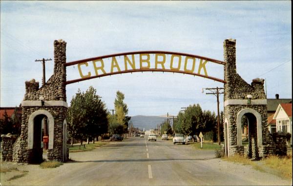 The East Entrance to Cranbrook, B. C. This arch welcomes thousands of travellers to the Key City of the Kootenays each year.