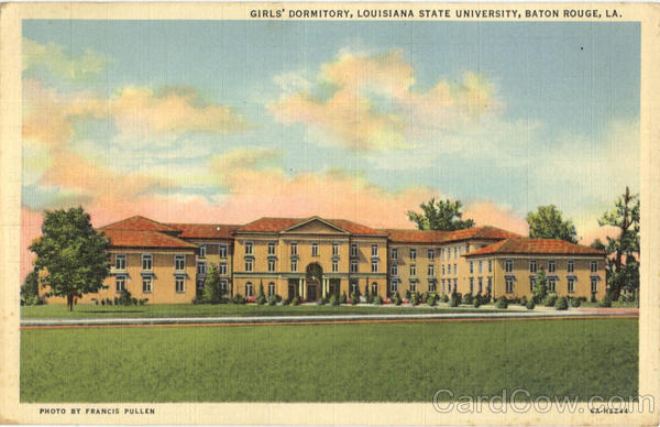 Front: GIRLS' DORMITORY, LOUISIANA STATE UNIVERSITY, BATON ROUGE, LA. PHOTO BY FRANCIS PULLEN 6A-H2244 Back: HARRIS NEWS AGENCY, BATON ROUGE, LA.