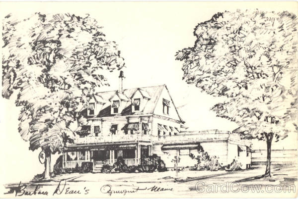 | Nationally known for serving Fine Foods on a Dining Porch which overlooks a beautiful garden to the sea. Breakfast, dinner and cocktails served daily. Less than a half mile from junction of U.S. 1 on U. S. 1A (Shore Rd.) at the Marginal Way. Ample Parking - Air Conditioned Master Charge - American Express - Visa |