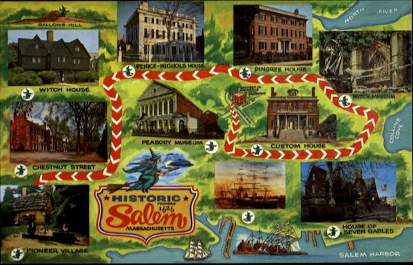 The historic city of Salem, Massachusetts. Historic trail showing famous landmarks in Salem.