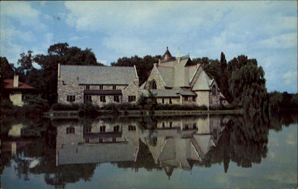 Trinity Episcopal Church in its picturesque setting on Van Cleef Lake in the heart of Seneca Falls. Cornerstone was laid in 1885 and the first service held here on Easter Sunday 1886. the Finger Lakes Region of Central New York