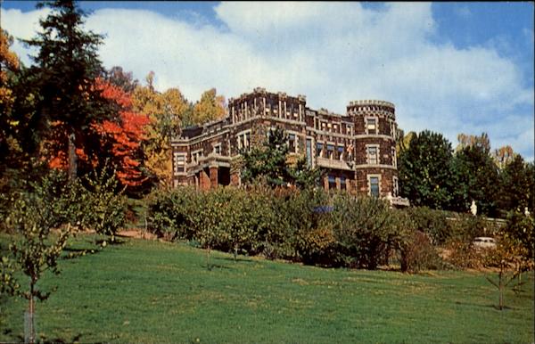 Garret Mountain Reservation, Paterson, N.J. 07503 Lambert Castle, facing East. Built in 1892 by Catholina Lambert, a prominent silk manufacturer, the Castle has a view of the skyline for 90 miles North and South.