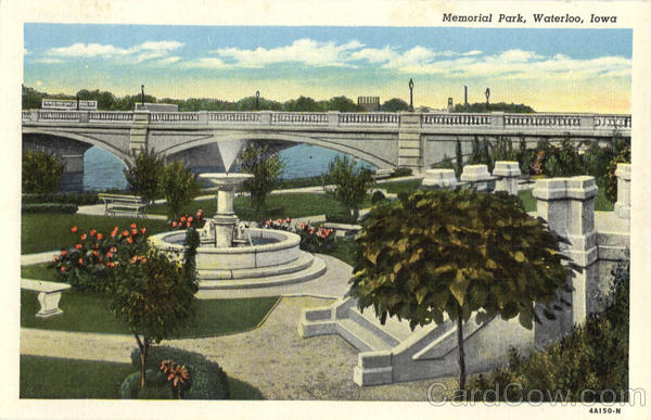 Front: Memorial Park, Waterloo, Iowa 4A150-N Back: WATERLOO NEWS AGENCY, WATERLOO, IOWA GENUINE CURTEICH-CHICAGO C.T. AMERICAN ART POST CARD (REG. U.S. PAT. OFF.) PLACE