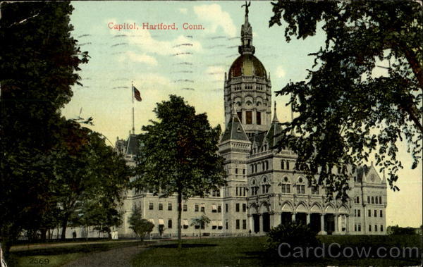 Front: Capitol, Hartford, Conn. 2569 ELCO Back: 530 PM 1909 Writter Here Mr Jamner Steven Coldspring. Jer Ed Ilen Baf 134 N.Y.