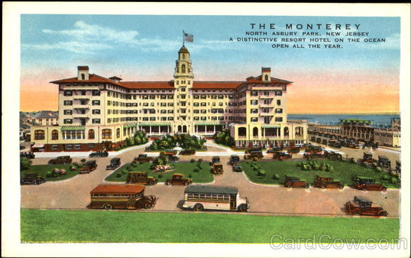Front: MONTEREY NORTH ASBURY PARK, NEW JERSEY A DISTINCTIVE RESORT H OTEL ON THE OCEAN OPEN ALL THE YEAR. Back: 7402 MADE IN U.S.A BY E. c. KROPP CO MILWAUKEE, WIS