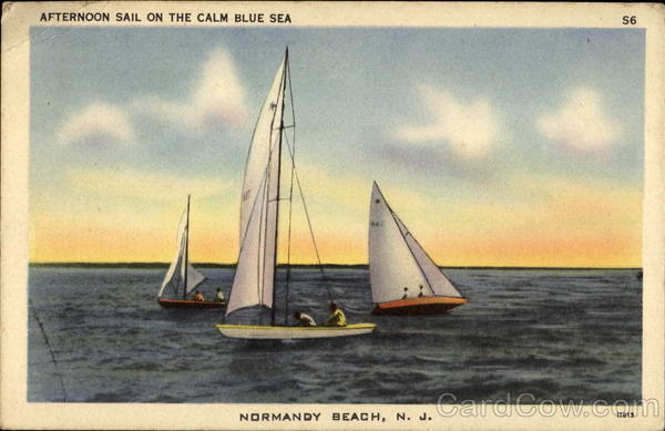 Front: AFTERNOON SAIL ON THE CALM BLUE SEA S6 NORMANDY BEACH, N. J. 11613 Back: COLOUR PICTURE" PUBLICATION, BOSTON 15 MASS.