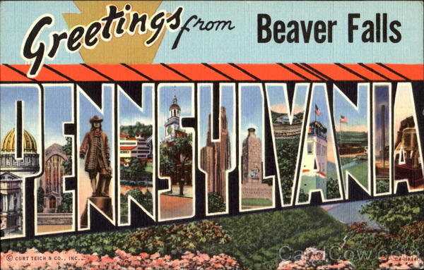 Front: Greetingspom Beaver Falls CURT TEICH & CO., INC. OB-H864 Back: MINSKY BROS. & CO. PUBLISHING DIVISION, PITTSBURGH, PA. "C.T.ART-COLORTONE' REG.U.S. PAT. OFF.
