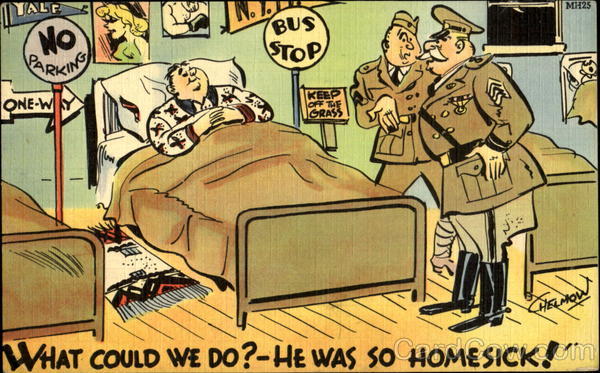 Front: YALE MH25 NO PARKING BUS STOP ONE-WY KEEP OFF THE GRASS WHAT COULD WE DO?-HE WAS SO HOMESICK!' Back: MADE IN U. S. A TICHNOR QUALITY VIEWS" REG. U.S. PAT, OFF MADE ONLY BY TICHNOR BROS, INC., BOSTON, MASS. 72483