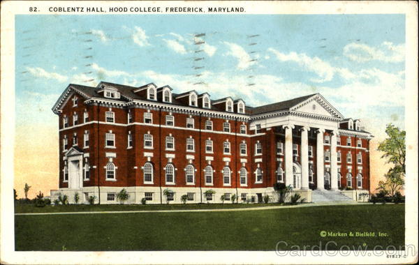Coblentz Hall, one of the new and modern dormitories on Hood College Campus, was erected in 1922, and named in honor of memory L. Coblentz in recognition of his efficient service and generous support of Hood college and all of its projects.