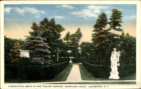 Front: A BEAUTIFUL WALK IN THE ITALIAN GARDEN. GEORGIAN COURT. LAKEWOOD, NJ. Back: Pub. by E. Finkelstein, Lakewood, N. J. DOST THIS SPACE FOR ADDRESS ONLY