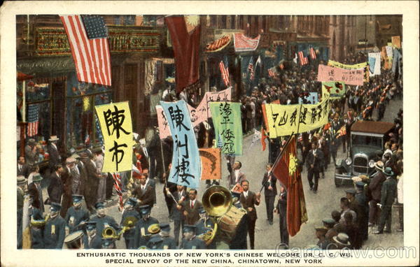 Enthusiastic Thousands of New York's Chinese welcome Dr. C. C. Wu, Special envoy of the New China, Chinatown, New York.