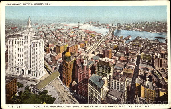 MUNICIPAL BUILDING AND EAST RIVER FROM WOOLWORTH BUILDING NEW YORK.