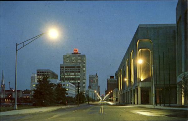 Main Street looking South. At right is the Everett r. Cook Convention & Exhibition Center, one of the finest facilities of its kind in the nation.