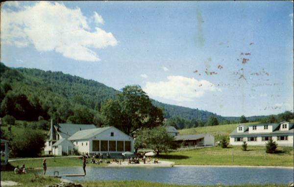 Cocktail Lounge, Rumps room, and Dining Hall, overlooking concrete Swimming Pool at Roundup ranch. Downsville, Delaware County N. Y.