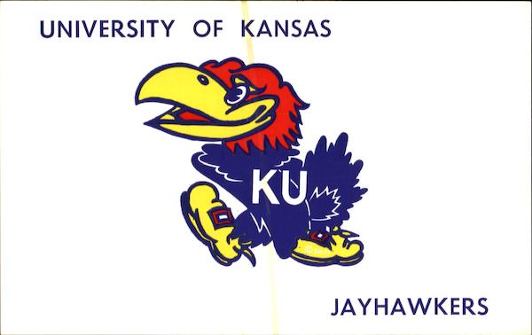 Front: UNIVERSITY OF KANSAS KU SANDY JAYHAWKERS Back: THE COLLEGIATE ETCHINGS COMPANY, LAWRENCE, KANSAS 50 HERE