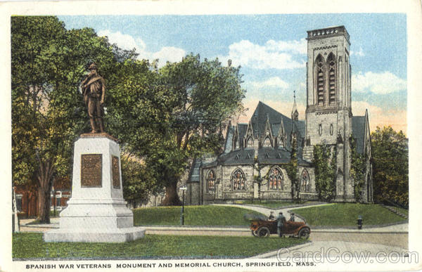 Front: SPANISH WAR VETERANS MONUMENT AND MEMORIAL CHURCH, SPRINGFIELD, MASS. X Back: AX-71238 PUBLISHED BY THE SPRINGFIELD NEWS CO., SPRINGFIELD, MASS, MADE IN USA So AN