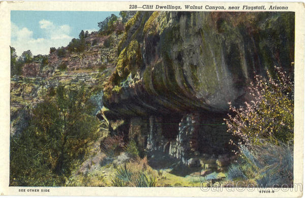 Flagstaff Gateway to the scenic wonders of Northern Arizona The Cliff dwellings of Walnut Canyon are some of the oldest in the southwest and are a National Monument. They were occupied approximately 1,000 years ago. They are nine miles east of Flagstaff and can be easily visited. The Museum of Northern Arizona at Flagstaff contains a fine collection of handicraft of the prehistoric Indians of this region |