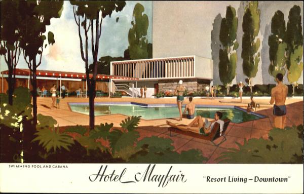 | Home of the famous Butlery and Wedgewood Rooms . . . Fine Dining room and coffee Shop . . . Cocktail Lounge . . . Garage . . . Ample Parking . . . Swimming Pool and Cabana. The Mayfair is one of 23 “western Hotels. Inc., serving you in 16 cities in the West. |