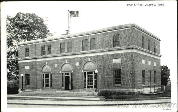 Front: Post Office, Athens, Tenn. 120600 Back: Joy sho is he UNTEED STATES OF AYRICA INDUSTRY AGRICULTURE NN 1897 FOR DEFENSE و نه فه رع 2 د مور ( مع ما GENUINE CURTEICH-CHICAGC.T. PHOTO-FINISH POST CARD” —(REG.U.S.PAT.FF.) Stabba rades Saillage