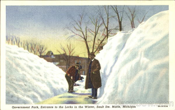 Front: Government Park, Entrance to the Locks in the Winter, Sault Ste. Marie, Michigan 9A-H1534 Back: PUBLISHED EXCLUSIVELY FOR FRANK T. PATYK, SAULT STE. MARIE, MICH. A A