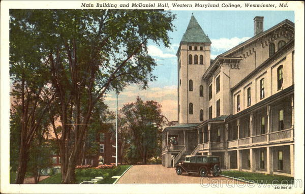 Front: Main Building and McDaniel Hall, Western Maryland College, Westminster, Md. 2A1086-N Back: 6/23/44 SKINSTAT WAINGTON UN 23 30PM ut denna Saniy his aps, Comellering With the milli le Jea bail Seatened