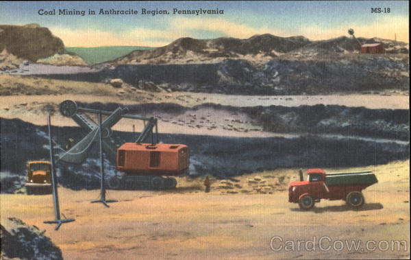 Front: Coal Mining in Anthracite Region, Pennsylvania MS-18 Back: Huge power shovel used in taking off top surface and coal during stripping operation in surface mining of hard coal. 79768 -THE MEBANE GREETING CARD COMPANY. WILKES-BARRE, PA-