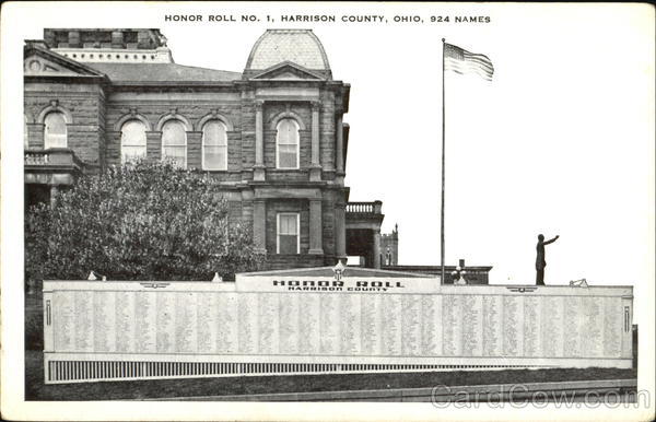 Front: HONOR ROLL NO. 1, HARRISON COUNTY, OHIO, 924 NAMES HON OR HARR on ROLL Back: со 4421 -PUBLISHED BY CADIZ NEWS AGENCY. CADIZ, OHIO MADE IN USA BY E C. KROPP CO., MILWAUKEE WIS.-(FA