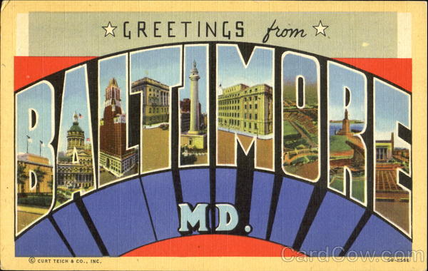 Front: ☆GREETINGS from MD. C CURT TEICH & CO., INC. OB-H558 Back: 1. & M. OTTENHEIMER, BALTIMORE, MD. C.T.ART.COLORTONE'' REG. U.S. PAT. OFF.