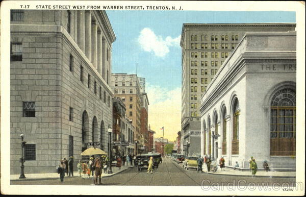 Front: T.17 STATE STREET WEST FROM WARREN STREET, TRENTON, N. J. EE CE EE EE ED THE TR EE E XXX SIEPL INIOR ORUGS 1A200 Back: LYNN H. BOYER, PHILADELPHIA, PA. AND WILDWOOD, N. J. C. T. AMERICAN ART COLORED