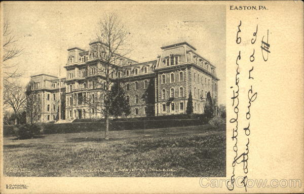 Front: EASTON, I E.D.VOGEL, COLLEGE EASTON, PA. Congrate ations saturdays. on aus race Tif Back: STON APR 27 1508 ww TED STATES OF 1790 1706 FRA IN Mr Frank B.Rodgers 216 Green Ave, Borkligt. 11.4. пу