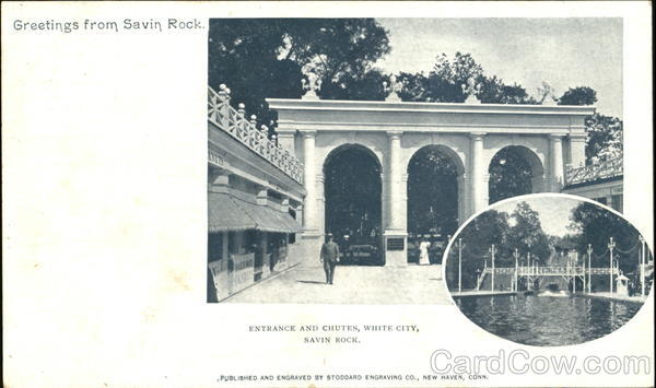 Front: Greetings from Savin Rock. ENTRANCE AND CHUTES, WHITE CITY, SAVIN ROCK. PUBLISHED AND ENGRAVED BY STODDARD ENGRAVING CO., NEW HAVEN, CONN. Back: ..... -.040... THIS SIDE FOR THE ADDRESS.