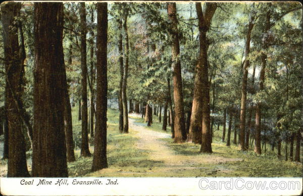 Front: Coal Mine Hill, Evansville. Jnd. Back: 82.-6 Illustrated Postal Card Co. New York-Leipzig, 15 DOMESTIC AND Two CENTS