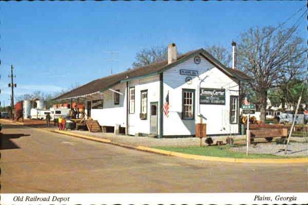 Series B6541 Old Railroad Depot - Dates back to 1888 when the line was operated by the americus, Preston and Lumpkin Railroad. Now operated by Seaboard Coast Line Railroad Co., Opened as offices for the Jimmy Carter Presidential Campign on April 18, 1976. Now one of the main attractions in Plains, Georgia . |
