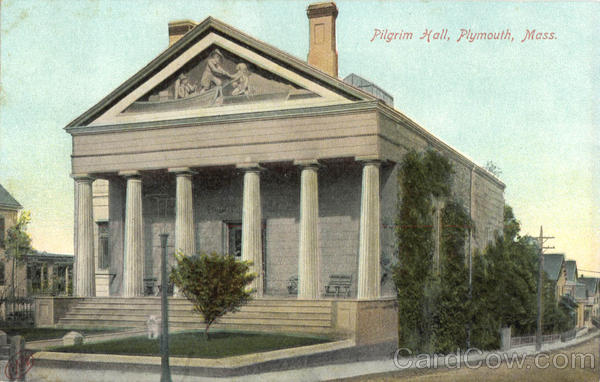 Front: Pilgrim Hall, Plymouth, Mass. Back: We (38664) No. 8039. The Robbins Bros. Co., Boston, Mass, and Germany. MADE IN GERMANY.