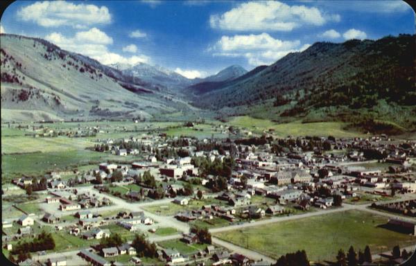 Panorama of Jackson, one of the last truly Western towns, in the famous Jackson Hole, Wyoming, adjacent to Grand Teton National Park.